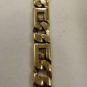 Witam serdecznie, W sprzedaży posiadamy złotą bransoletą . Złoto próby 585 Masa wyrobu 21,56g Długość 22cm Szerokość 7mm uwaga uszkodzone zapiecie widoczne na zdjeciu