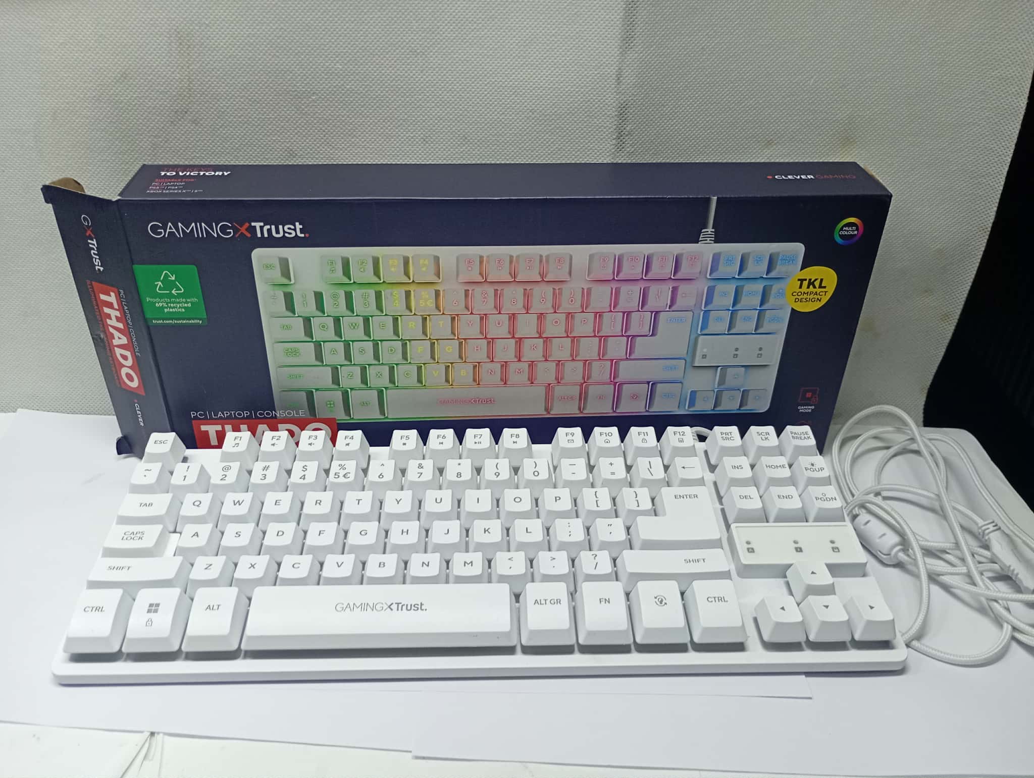 Na sprzedaż: Klawiatura gamingowa Trust GXT833W Thado TKL JAK NOWA!